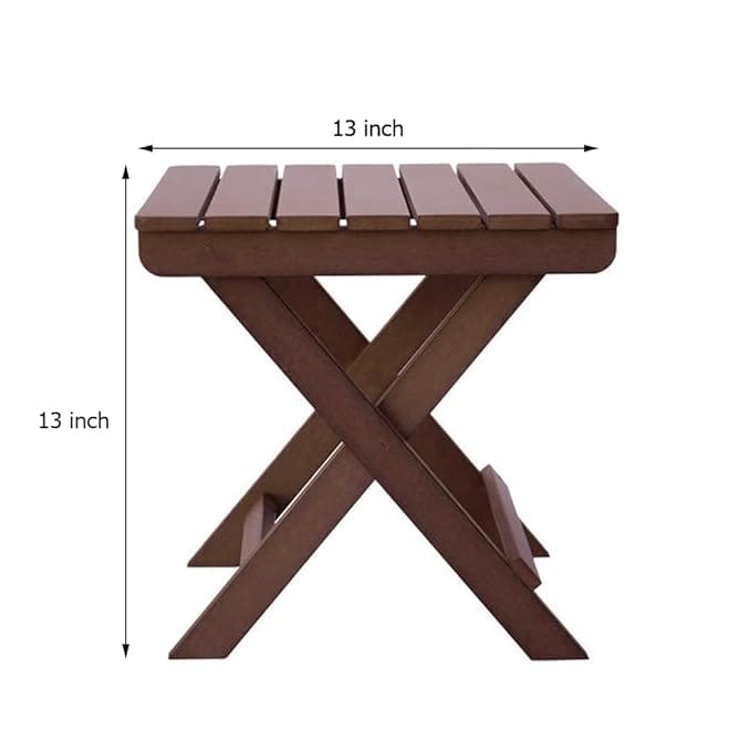 Bring functionality and style to your home with this foldable wooden side table. Crafted from premium quality wood, this compact table measures 13 x 13 inches, making it perfect for indoor and outdoor use. Its sturdy X-shaped design ensures durability, while the foldable feature allows for easy storage and portability. Ideal for use as a coffee table, bedside table, utility stand, or balcony décor, this versatile piece blends seamlessly with any interior or exterior setting.
