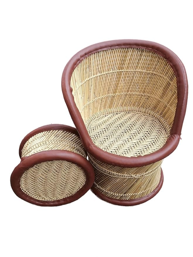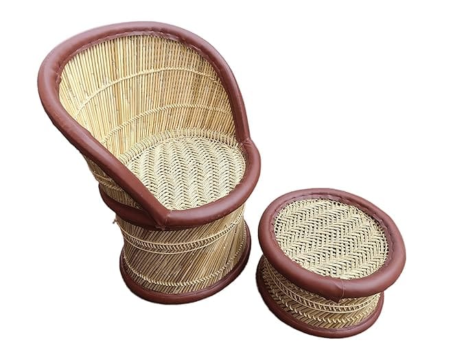 Bring home a touch of tradition and elegance with this handcrafted bamboo cane chair and stool set. Made by skilled artisans, this eco-friendly rattan furniture combines comfort with durability. The ergonomic design ensures a relaxed seating experience, while the sturdy structure makes it ideal for both indoor and outdoor use. Perfect for living rooms, balconies, patios, or garden spaces, this natural furniture set adds warmth and rustic charm to any corner of your home.