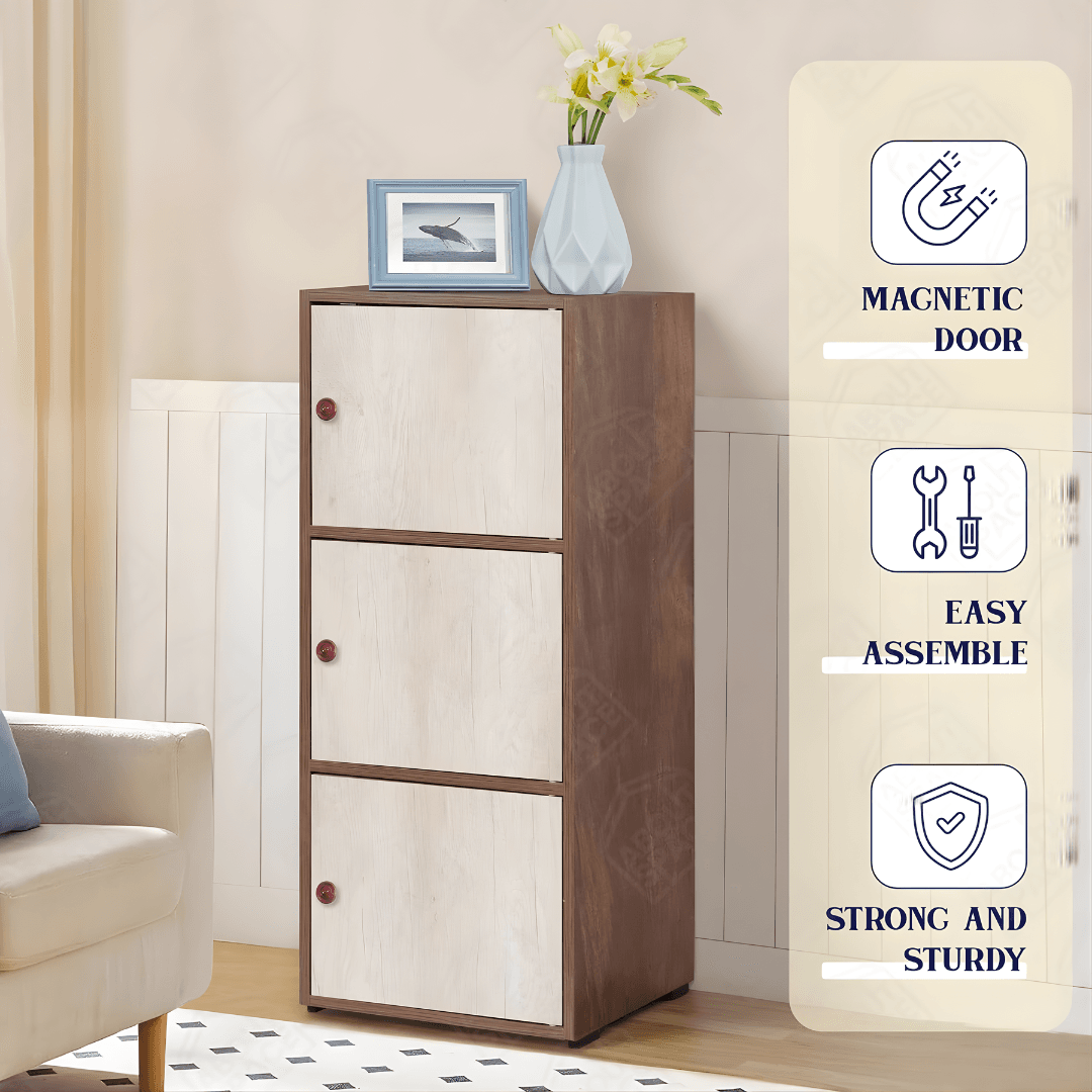 Crafted from high-quality engineered wood, this cabinet ensures durability, strength, and long-lasting use. Each of the three spacious compartments comes with a magnetic door closure, keeping your items safe, clean, and easily accessible.