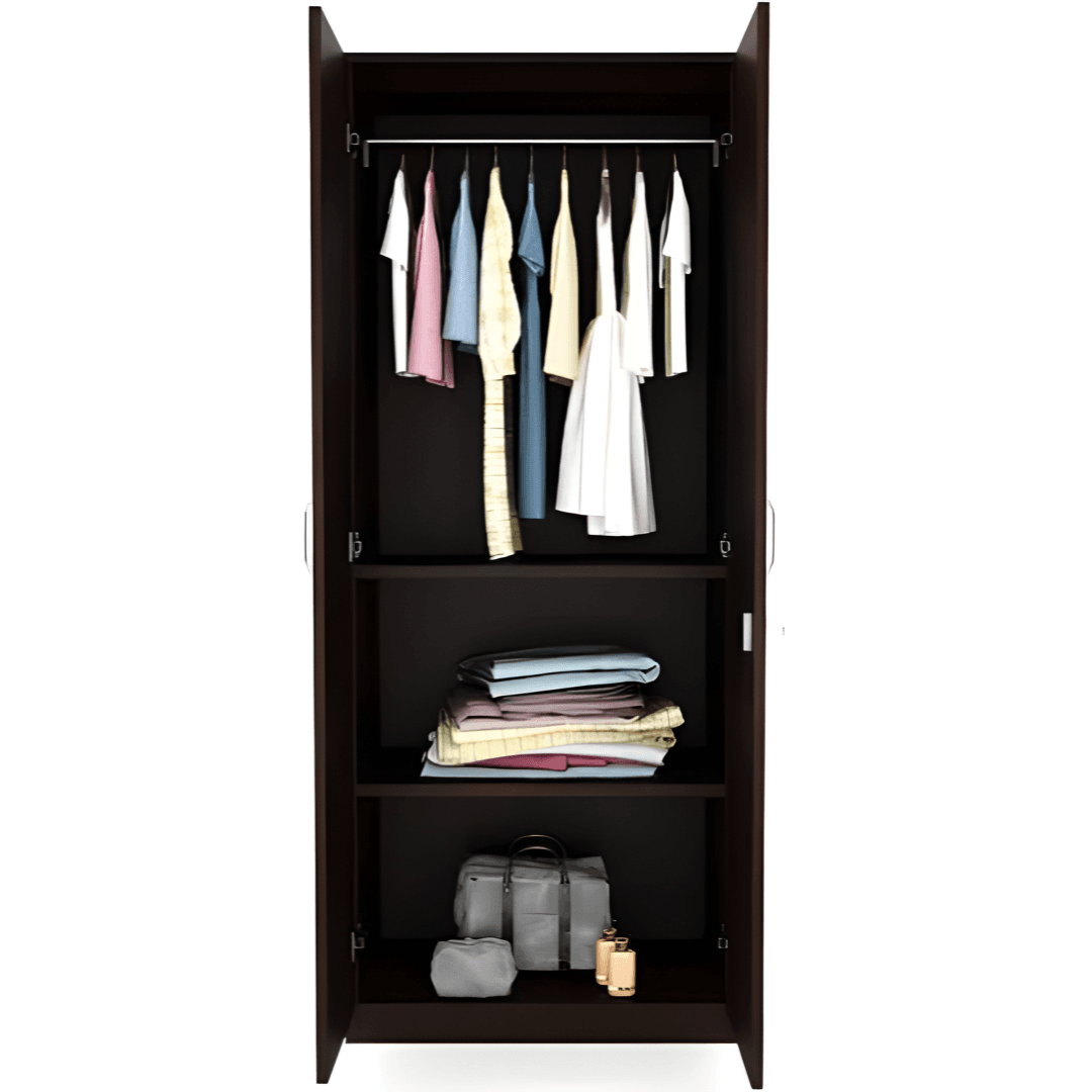 Upgrade your room with this Premium 2-Door Wooden Wardrobe, designed to offer maximum storage in a compact footprint. Made from durable engineered wood with a rich dark-brown finish, this wardrobe is ideal for organizing clothes, accessories, and daily essentials.