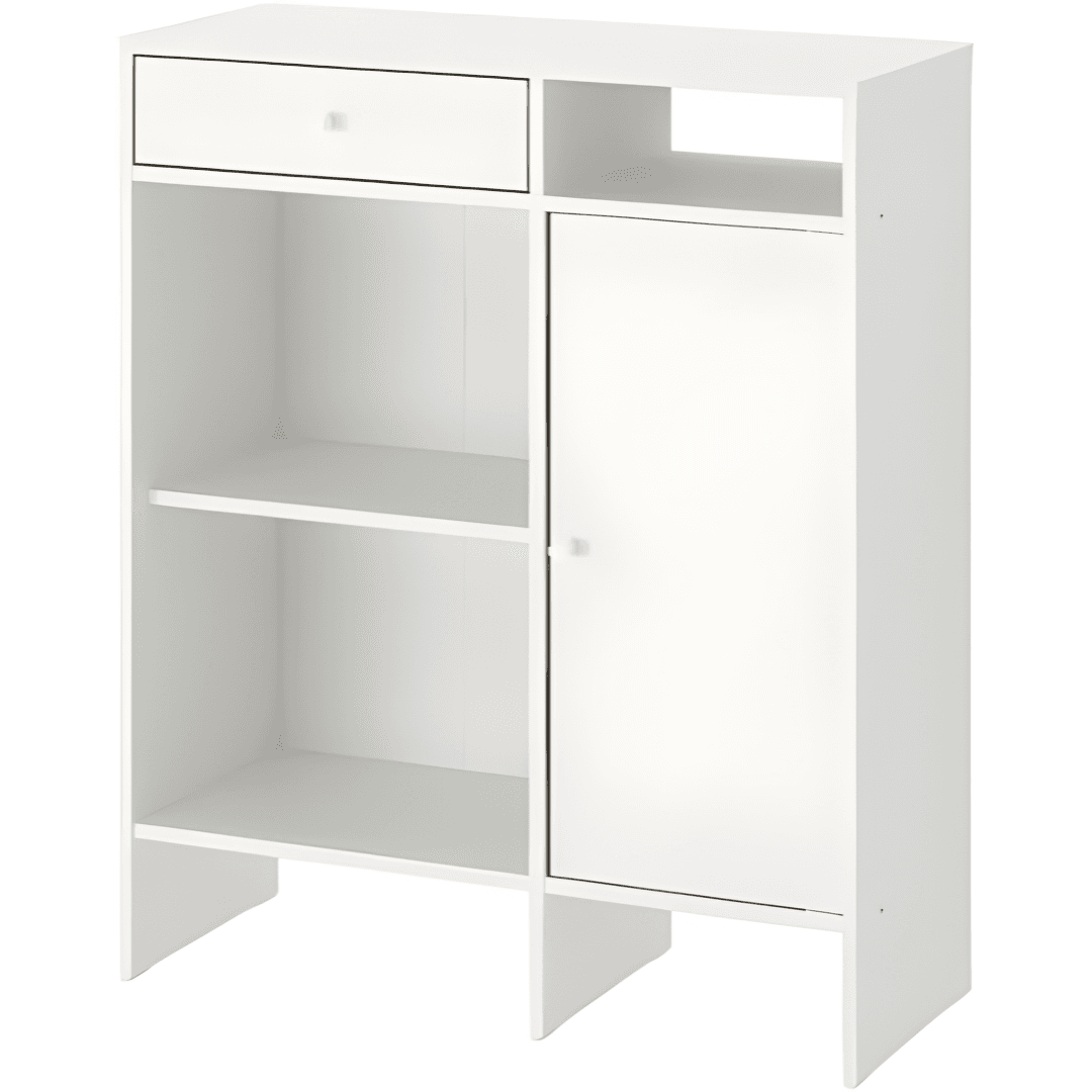 Crafted with a sleek white finish, this cabinet is designed to organize your essentials in style. It features a smooth pull-out drawer, closed door cabinet, and open shelving—perfect for storing books, accessories, or everyday items.